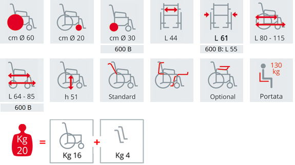 Le carrozzelle per disabili articolate Surace modelli 600 e 600B offrono robustezza, comfort e versatilità grazie alla presenza della doppia crociera e di una struttura pensata per un uso intensivo. Entrambi i modelli sono indicati per utenti che necessitano di una carrozzina pieghevole regolabile, dotata di accessori per la personalizzazione posturale e per le esigenze quotidiane.