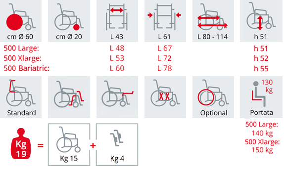 Home » Shop » Articoli Ortopedici » Carrozzina classica con doppia crociera – Surace 500/500L/500 BARIATRIC