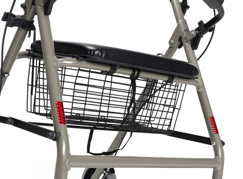 Il rollator è completo di cestino estraibile, porta bastone e accessori utili per facilitare la vita quotidiana. Il sistema pieghevole consente di ridurre l’ingombro quando non in uso.