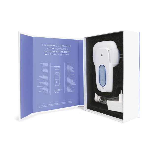 THERAPIST® 150 PLUS è un dispositivo medico brevettato per la magnetoterapia a campi magnetici pulsati fino a 150 Gauss, progettato per offrire un trattamento efficace contro dolori acuti e cronici, traumi e fratture. Grazie alla tecnologia brevettata con solenoide integrato, rappresenta un punto di riferimento nell’ambito della terapia magnetica professionale.