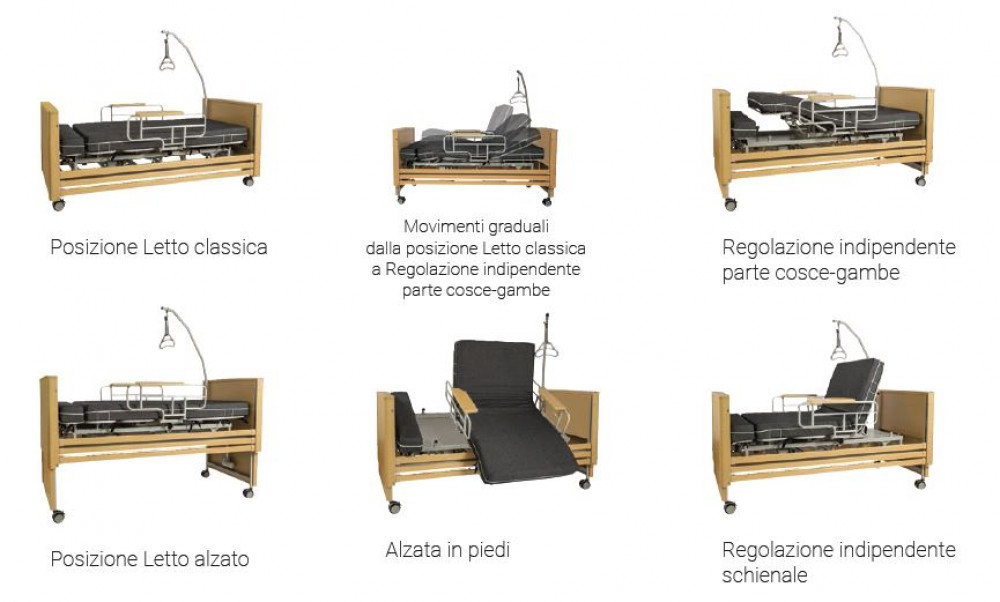 Grazie alla funzione di rotazione laterale + alzata in piedi, il letto TWIST consente all’utente di sedersi o alzarsi con maggiore autonomia, riducendo la fatica per gli operatori o familiari assistenti. Inoltre, la regolazione in altezza facilita il lavoro del personale infermieristico e migliora la sicurezza complessiva.