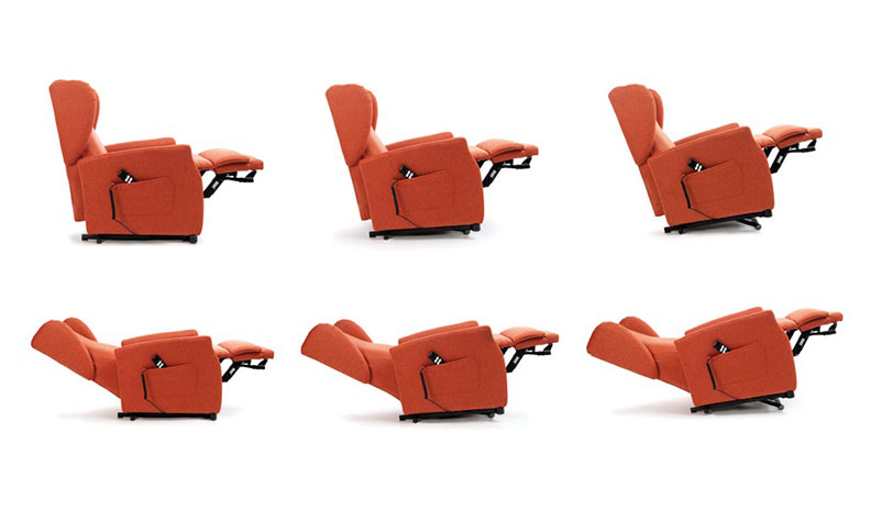 La poltrona è dotata di meccanica a 2 motori che consente di regolare separatamente schienale e poggiapiedi. Le funzioni Lift e Relax aiutano a sollevarsi in sicurezza e a trovare la posizione ideale per leggere, guardare la TV o riposare.